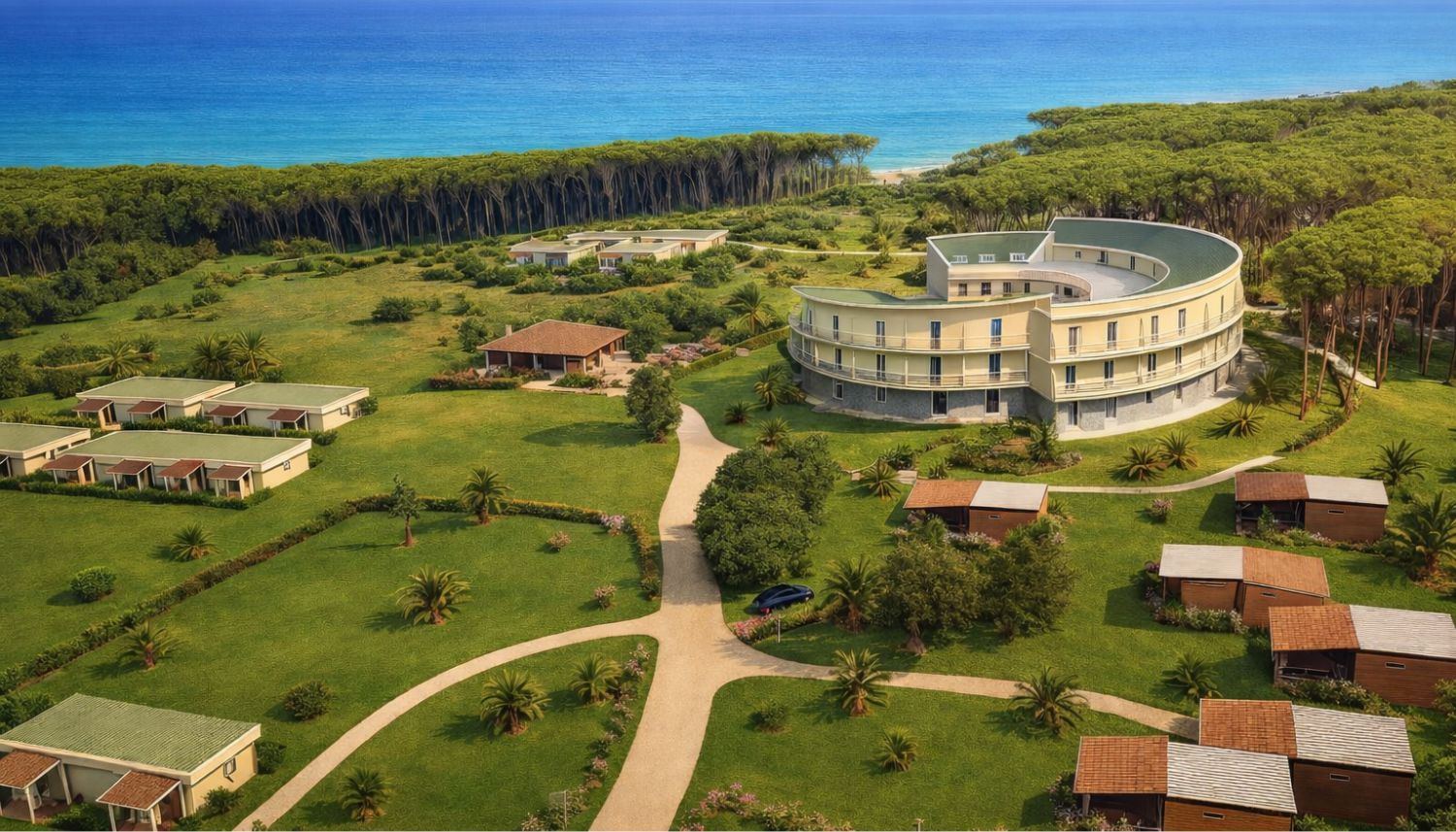 Percorsi morbidi, spazi aperti che respirano. Un equilibrio autentico tra privacy, natura e servizi, a pochi passi dalla spiaggia.